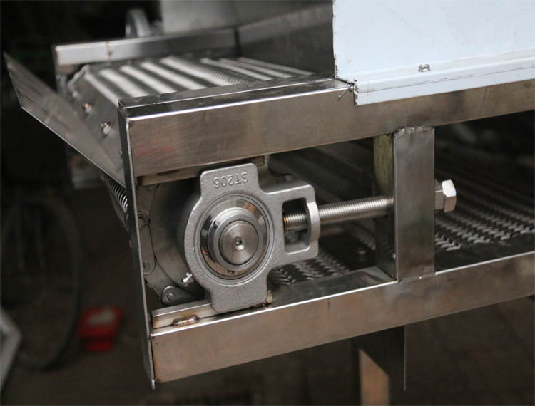 除用于普通物料的輸送外,還可滿足耐油、耐腐蝕、防靜電等有特殊要求物料的輸送。轉彎輸送機在減速電機的驅動下,由主動輥上的鏈輪帶動側彎鏈運動,側彎鏈條再通過連接附件帶動扇形輸送帶運行,從而實現對旅客行李在水平面上的轉彎輸送作業。