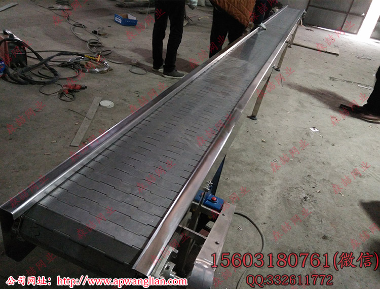 既然是用來排屑的輸送設備,那肯定會輸送很多小顆粒的碎屑物質,而一般的輸送網帶網孔都比較大,很容易掉落碎屑,鏈板網帶是很多塊網板通過穿軸鏈接在一起,結構緊密縫隙小,網板可以根據客戶要求打孔或者沖壓凸點,既可以通風 透氣還可以增大網面摩擦力。